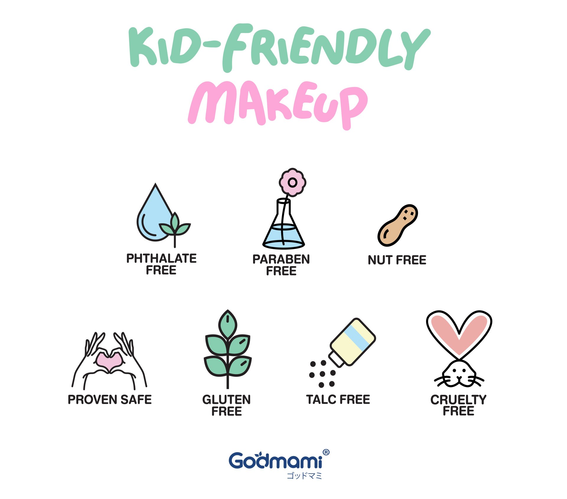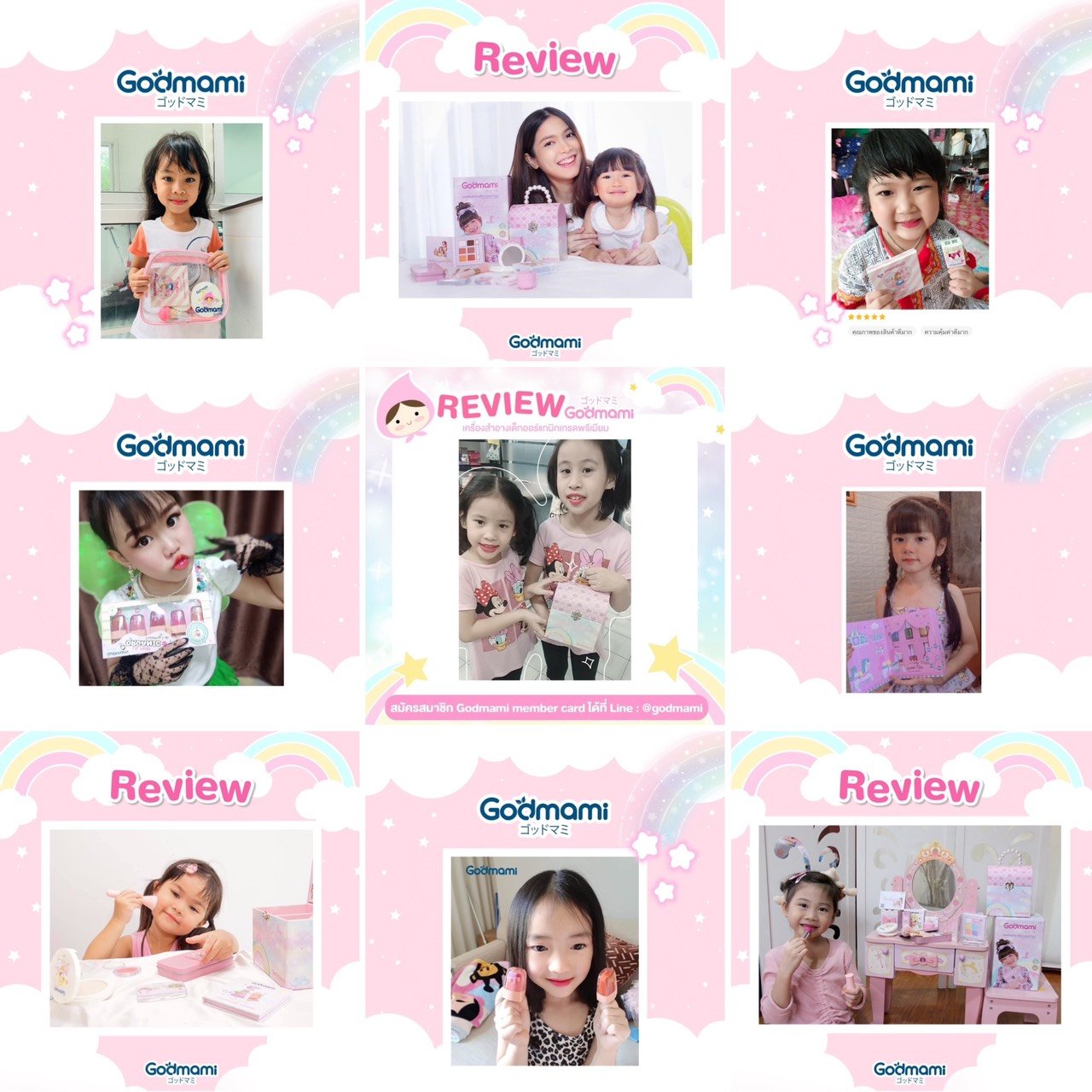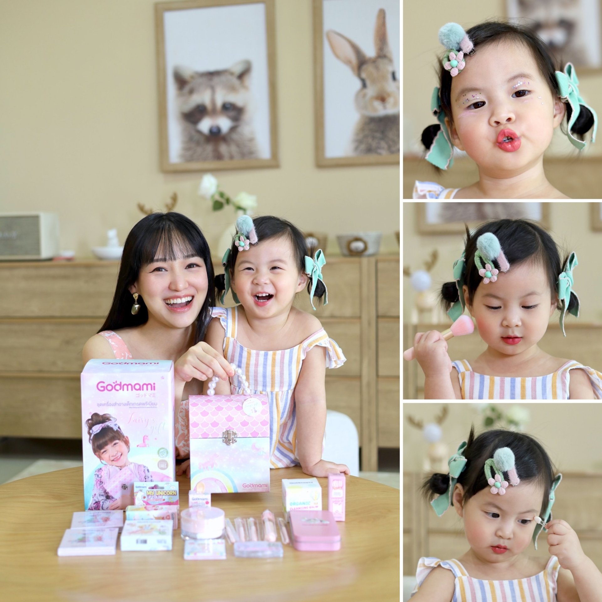 Children at 2 years of age and above are in the age group that mainly involves social and emotional development. Children love to look at the people around them and remember others’ behaviors precisely as a CCTV. It is therefore not uncommon for children to imitate exactly how their mothers apply makeup. Plus, they are full of imagination, creativity and fun when doing new activities. Thus, when they secretly play with mother's makeup is not a misbehavior or risk of boys’ sexual deviation that adults often worry about. On the other hand, this play helps to encourage good development both physically, which is the small muscle control including hands and fingers, and mentally, which helps children to focus. In addition, it enhances their imagination, creativity, and opportunity to find their aptitude or talent since childhood. Allowing children play with makeup should be encouraged, but it must be under the supervision of parents. Choosing kid’s cosmetics is the best choice. Godmami kid’s cosmetics has been developed for the imagination enhancement and it can be used in activities both inside and outside the school.